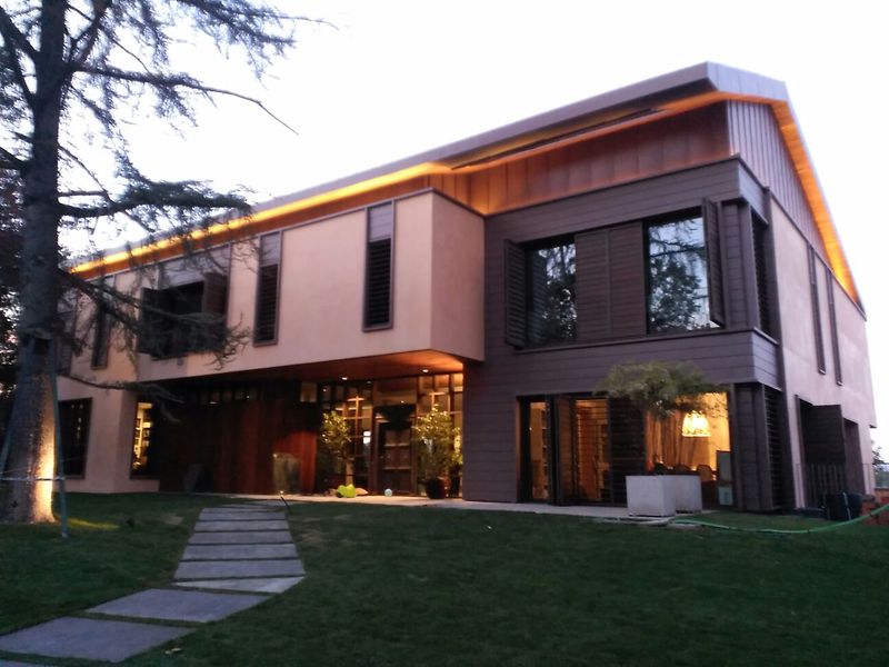 La vivienda se concibe como respuesta a la condición de límite con la que cuenta la parcela. El programa se desarrolla en relación a las orientaciones y al jardín, pero manteniendo constantemente como foco de atención el Monte del Pardo.