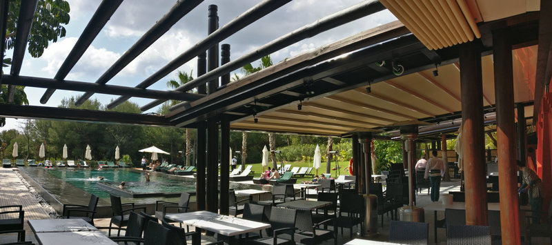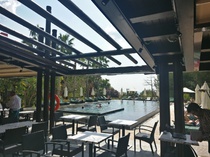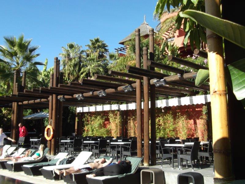 La intervención en el Restaurante Zen del Hotel Asia Gardens partía de la premisa de recuperar unas estructuras a base de rollizos de madera, en la que había que integrar una cubierta textil motorizada. EL objetivo principal del proyecto fue conseguir la integración total de la pieza en el conjunto, a la vez que la viabilidad técnica de la propuesta.